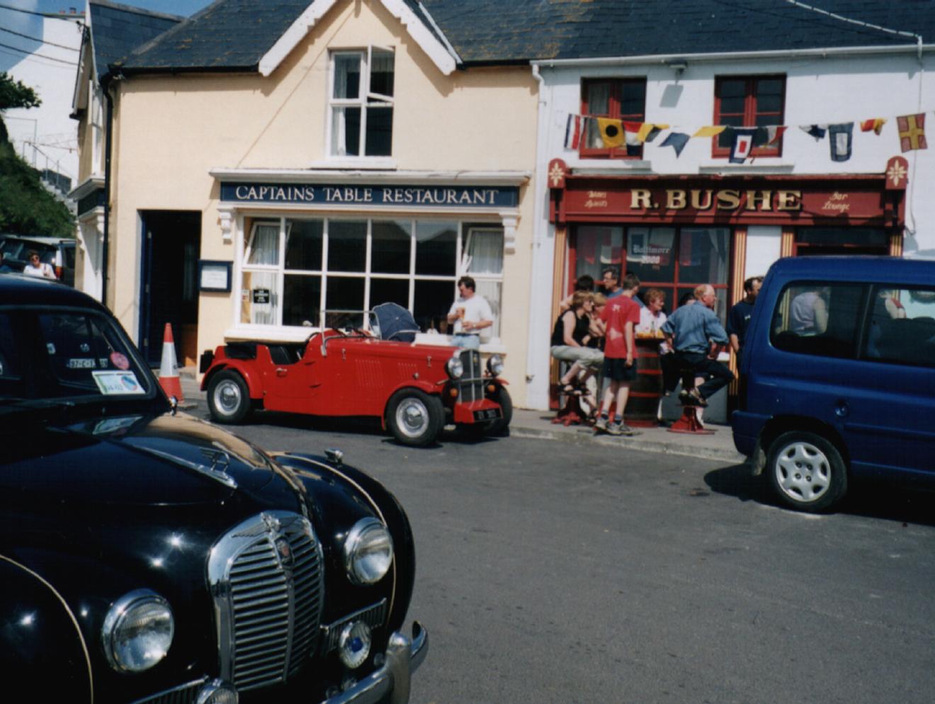 A couple of antique cars in front of Bushe's when we return from Sherkin Island. |