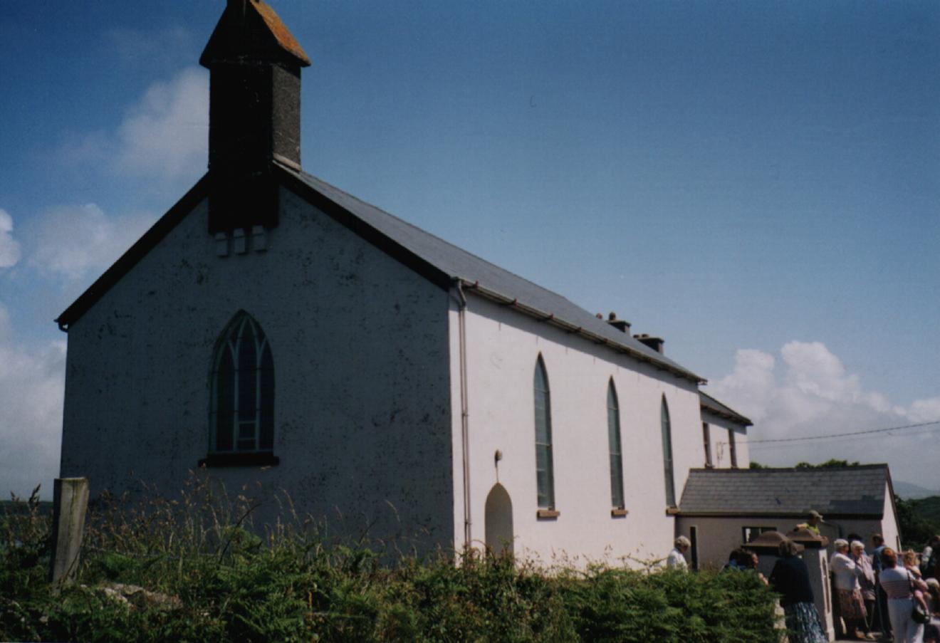 ![]() Visitors and locals gather outside the church after Mass on Sherkin Island. |