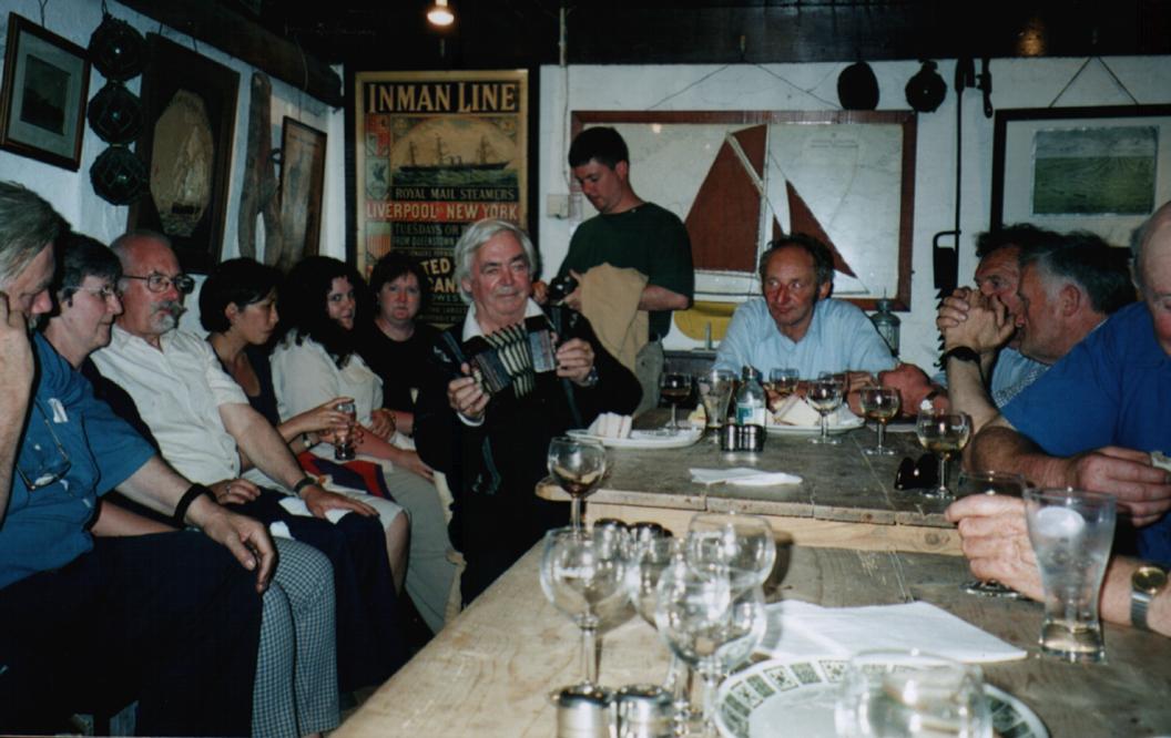 Saturday dawned warm and sunny again! We found ourselves wending our way down the hill to the docks where Conchubar's ferry was waiting to take us to Cape Clear Island for the day. Following a slightly arduous hike through the hills of Cape Clear, guided by a pair of naturalists who made the hike informative as well as fun, we met at one of the Island Pubs for a tasty meal and a lecture on genealogical searches in Ireland. Exploring the island a little on our own we found a lovely old cemetery which, unfortunately, was not able to impart any of its secrets to us as access to these areas had been closed due to the outbreak of foot and mouth disease in the British Isles.